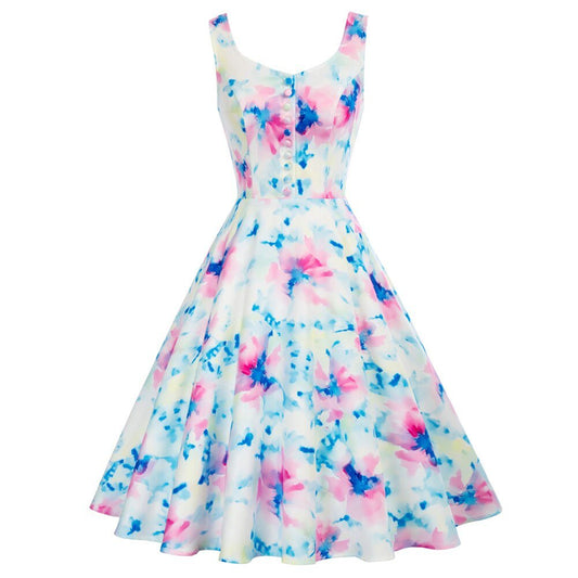Belle Poque Women Dresses Vintage Pineapple Pattern Dress Sleeveless Buttons Decorated Print Vacation Summer A-Line Dresses New